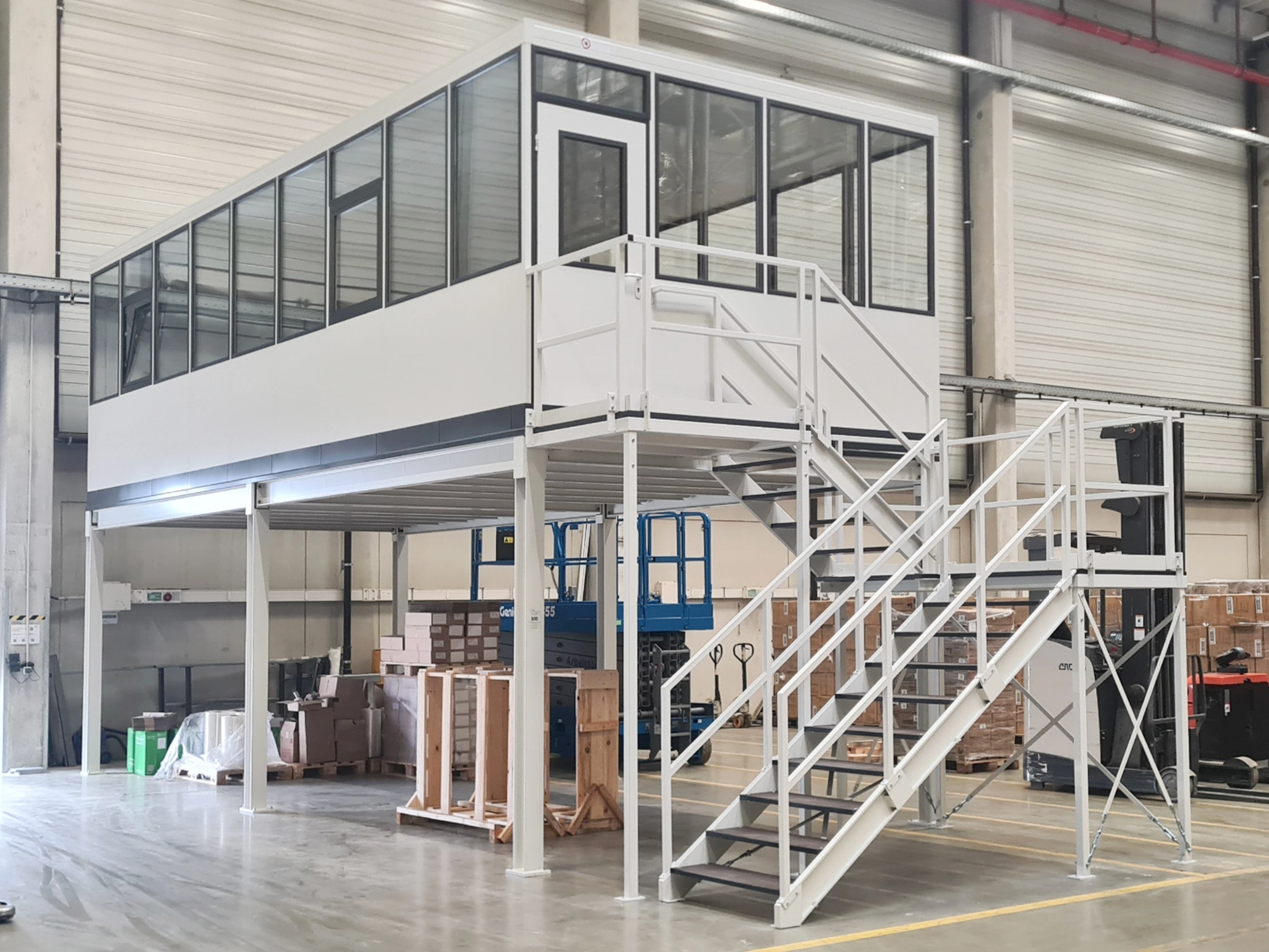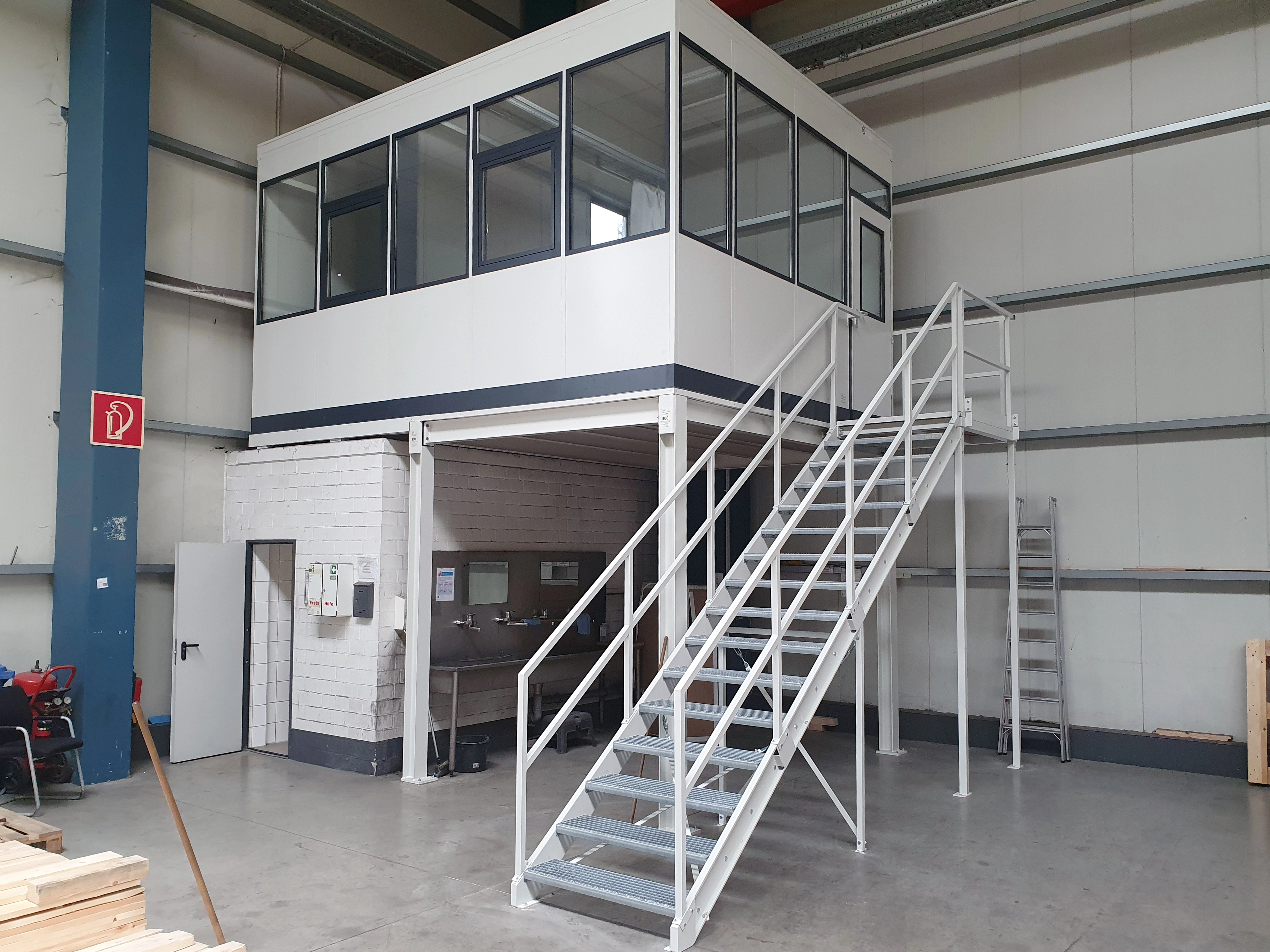 Um in Lagerhallen oder auch Produktionsbetrieben die Grundfläche der Halle nicht unnötig zu verschwenden wird ein Hallenbüro auf…