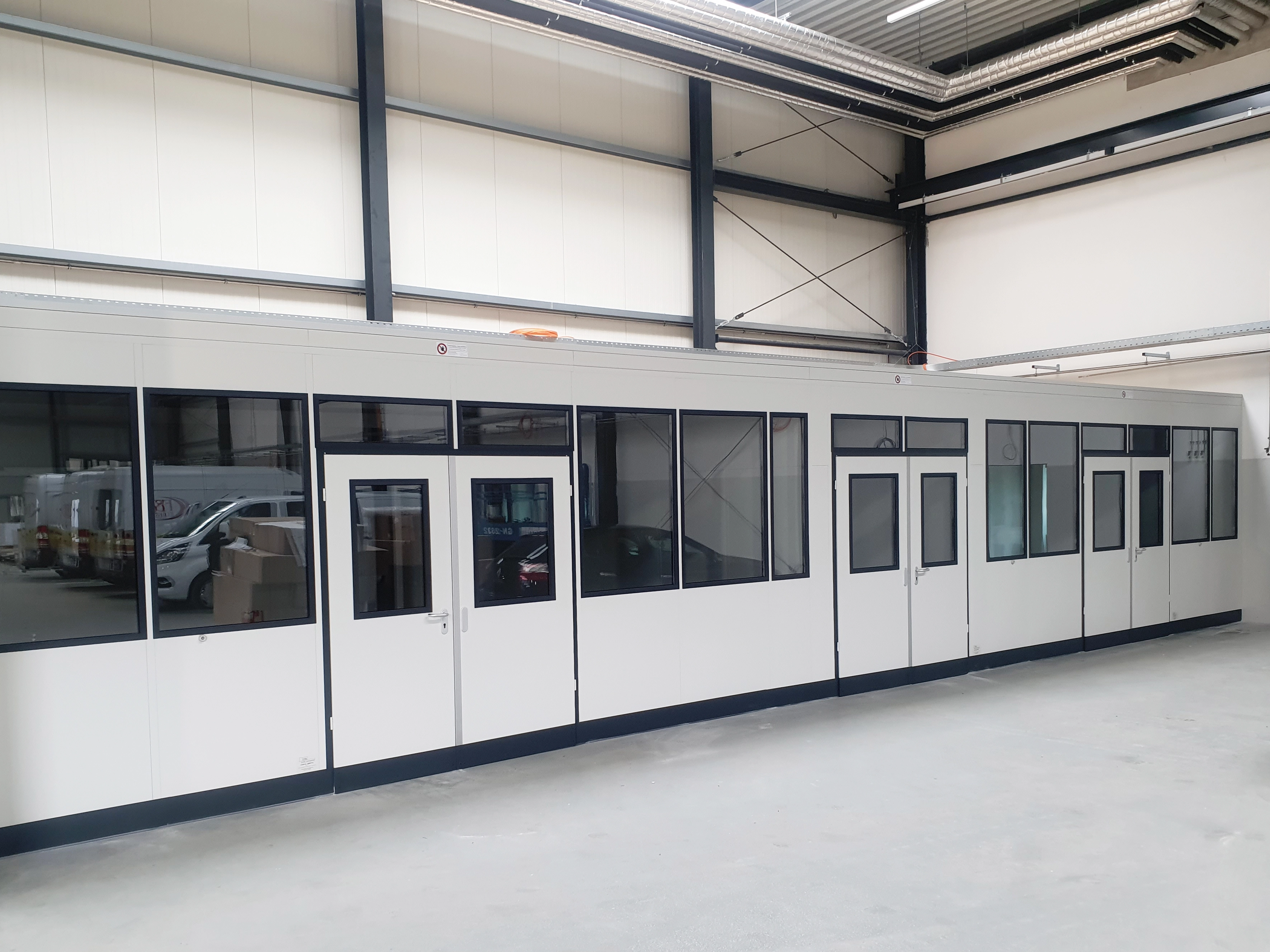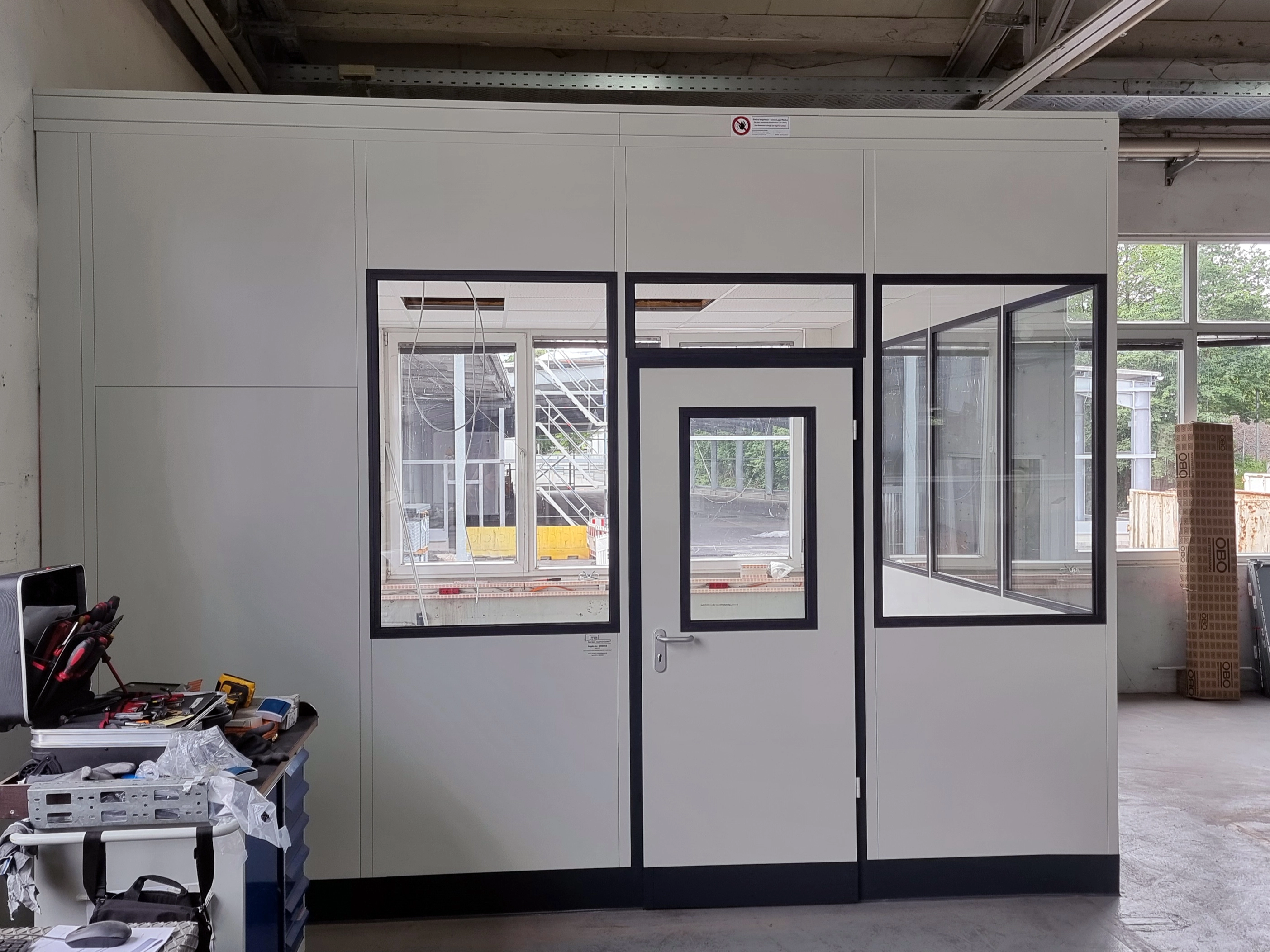 Die schnelle Montage und Demontage von einem Hallenbüro ist ein wesentlicher Vorteil für industrielle Betriebe. Dank der genormten Einzelteile des Wandsystems können Hallenbüros innerhalb kurzer Zeit auf- und abgebaut werden, was die Effizienz in der Produktionsplanung steigert. Diese Eigenschaft ermöglicht es Unternehmen, ihre räumlichen Strukturen flexibel zu gestalten, ohne langfristige Einschränkungen einzugehen. Im Falle von Umstrukturierungen oder Erweiterungen kann das bestehende System problemlos angepasst oder neu konfiguriert werden. Dies reduziert nicht nur die Stillstandszeiten in der Produktion, sondern sorgt auch dafür, dass Ressourcen optimal genutzt werden. Die Integration von Zubehör in ein Hallenbüro kann ebenfalls zur Optimierung der Produktivität beitragen. Unternehmen haben die Möglichkeit, ihre Büros mit verschiedenen technischen Einrichtungen auszustatten, wie zum Beispiel erhötem Schallschutz für die Raumsysteme.