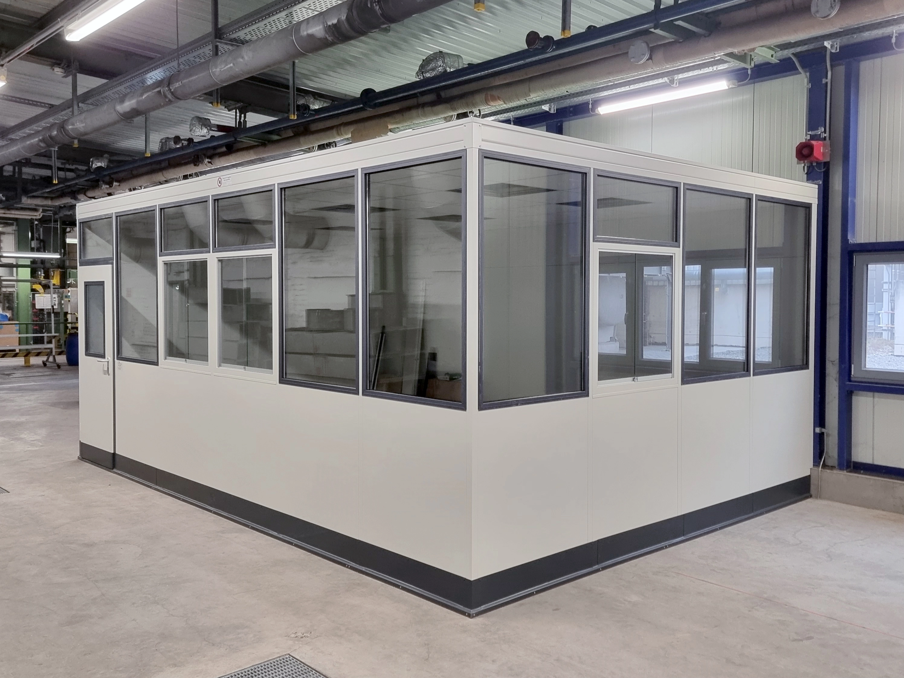 Modulare Hallenbüros erhöhen die Effizienz Ihrer Produktionshalle, indem sie ungenutzte Flächen in produktive Arbeitsraum- und Bürofläche verwandeln. Durch die individuelle Planung mit einem Fachberater passen sich die Raumsysteme nahtlos an Ihre Arbeitsabläufe an und vermeiden ineffiziente Flächenverluste. Die genormten Bauteile des System RS 45 gewährleisten sowohl Brandverhalten als auch Schallschutz auf hohem Niveau. Das System RS 45 ist speziell für Lager- und Produktionshallen konzipiert: werkseitig produzierte Module lassen sich schadensfrei demontieren und mehrfach wiederverwenden. Neben Meisterbüros bieten unsere Raumsysteme offene Arbeitsräume oder geschlossene Büros für vertrauliche Besprechungen. Glasvarianten, geschützte Elemente und unterschiedliche Ausführungen ermöglichen individuelle Lösungen für jede Arbeitsumgebung.