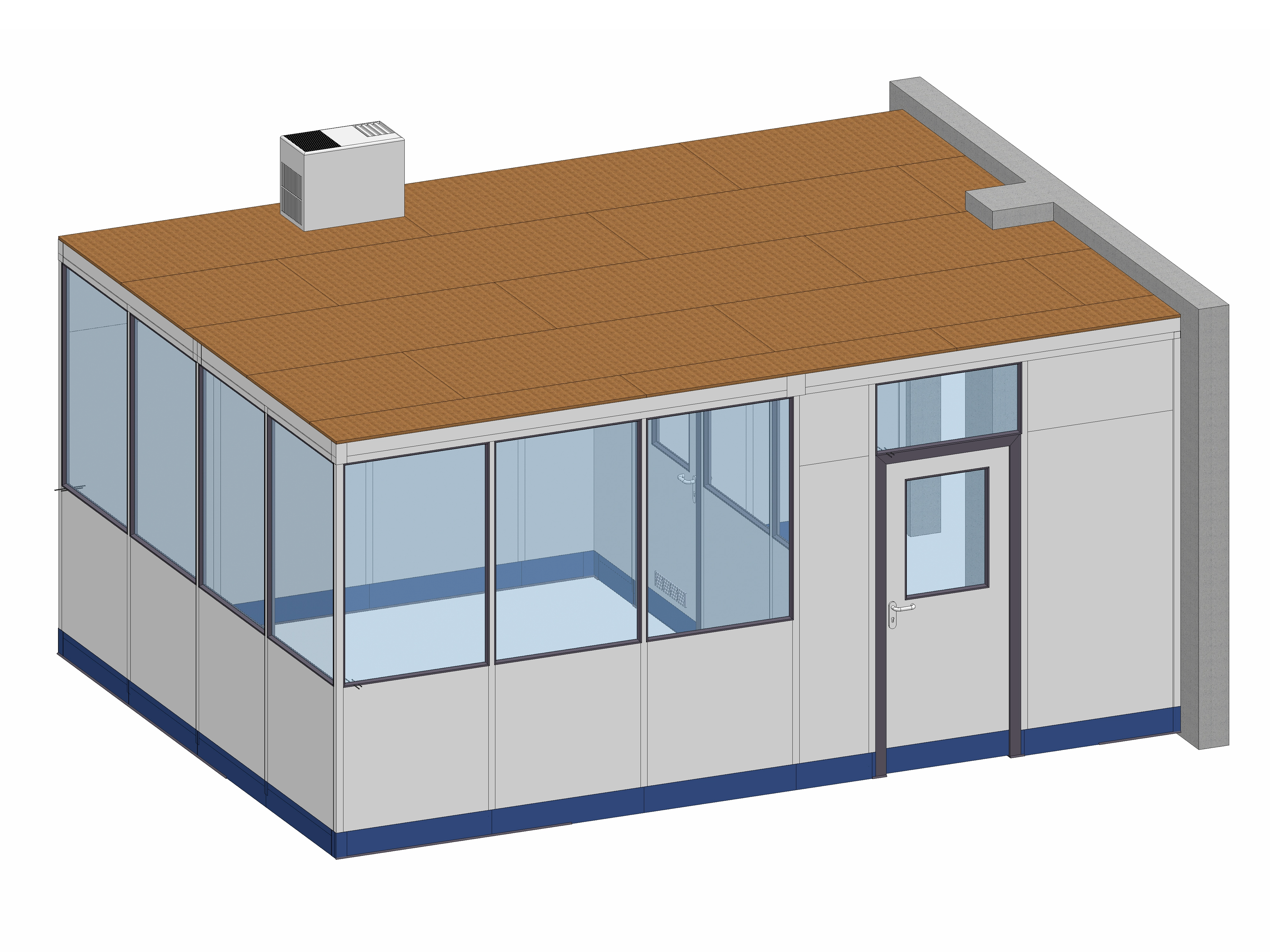 Wir fertigten für den Kunden eine detailgetreue 3D-Skizze, mit welcher er sich einen besonders plastischen Eindruck von seinem gewünschten Halleneinbau machen konnte. Anhand der Zeichnung konnten wir im Beratungsgespräch die einzelnen Merkmale klären und die exakten Maße festlegen. Da mehrere Halleneinbauten gewünscht waren, konnten für jedes einzelne Raumsystem besondere Merkmale festgelegt werden. Unsere große Erfahrung im Aufmaß und der Beratung rund um das richtige Raumsystem half uns, alle anfallenden Details im Vorfeld abzuklären. Zu diesem Zweck befragten wir auch alle Mitarbeiter, welche die Meisterkabinen nach der Installation nutzen sollten. Von dieser Seite kamen noch zahlreiche Anregungen und Änderungswünsche, welche wir aufgrund der gründlich geführten Gespräche in die Planung einpflegen konnten. Mit diesen Informationen erstellte unser Konstruktionsteam die notwendigen Fachzeichnungen. Die zentrale Fertigungsstätte hatte alle Komponenten dieses kleinen Objektes schnell hergestellt und versandbereit verpackt.