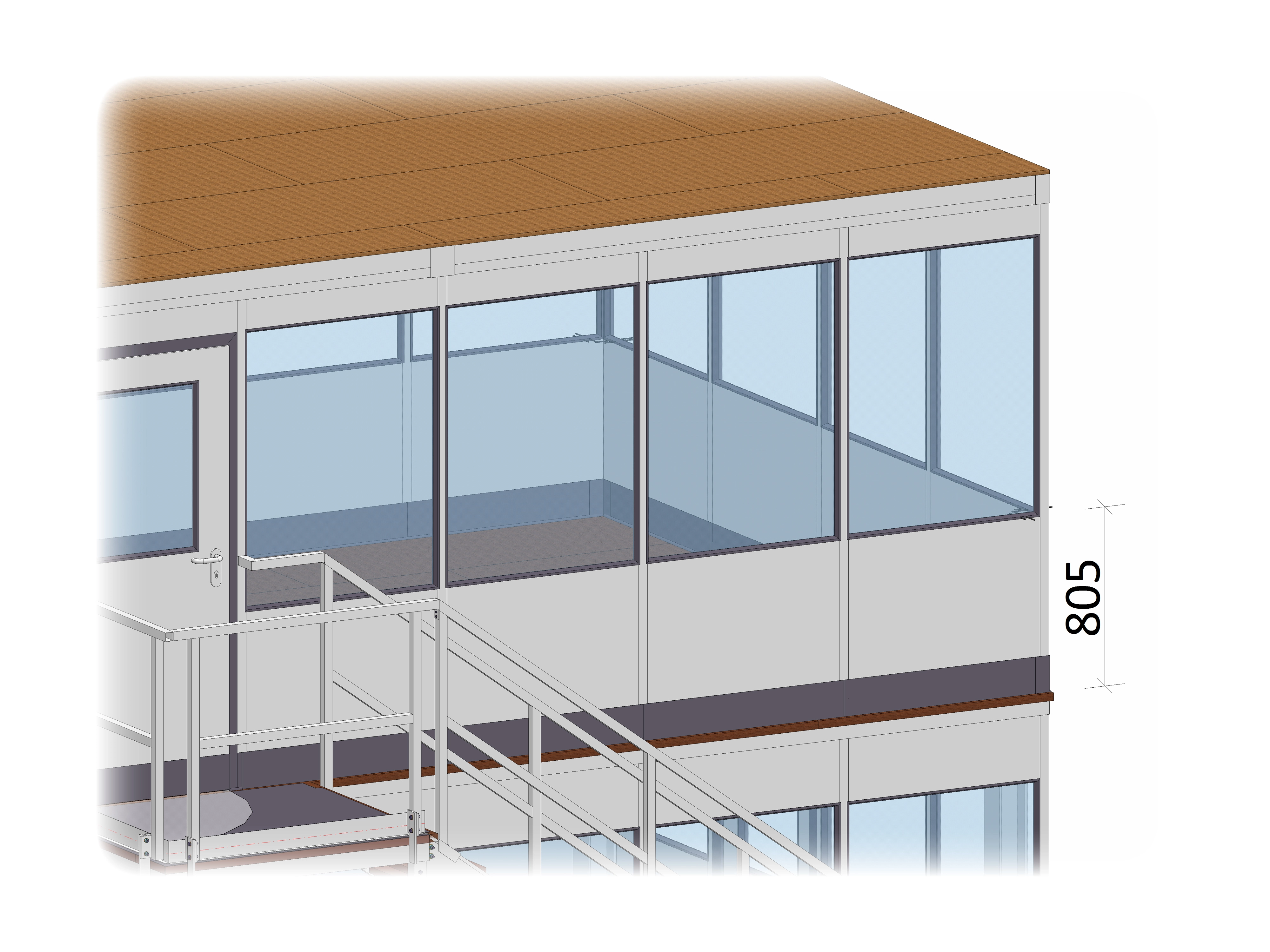 Besonderheiten - 4-seitiges Objekt, niedrige Brüstungshöhe, Treppenaufgang, mehrgeschossig