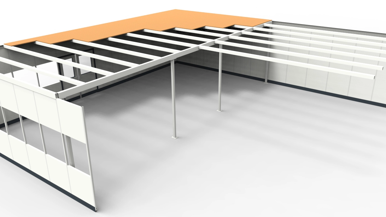 Alle Raumsysteme aus dem System RS 45 werden mit abgeschlossenen Deckenkonstruktionen ausgestattet. Die Ausstattung der Deckenkonstruktionen kann variieren und ist nach individuellen Wünschen und Anforderungen anpassbar.