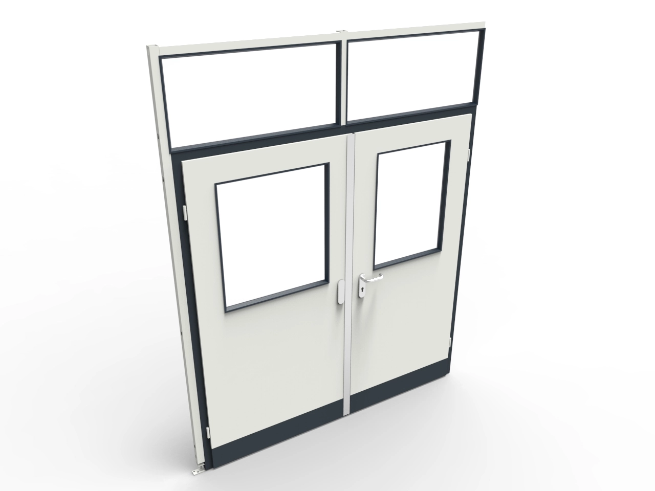 Die Türelemente aus dem System RS 45 können frei mit allen Wandelementen kombiniert werden. Unterschiedliche Größen der Türelemente lassen eine individuelle Gestaltung der Raumsysteme oder Trennwandsysteme zu. Neben einflügeligen Türelementen sind auch Türen mit Doppelflügel möglich um das lichte Durchgangsmaß zu erhöhen.