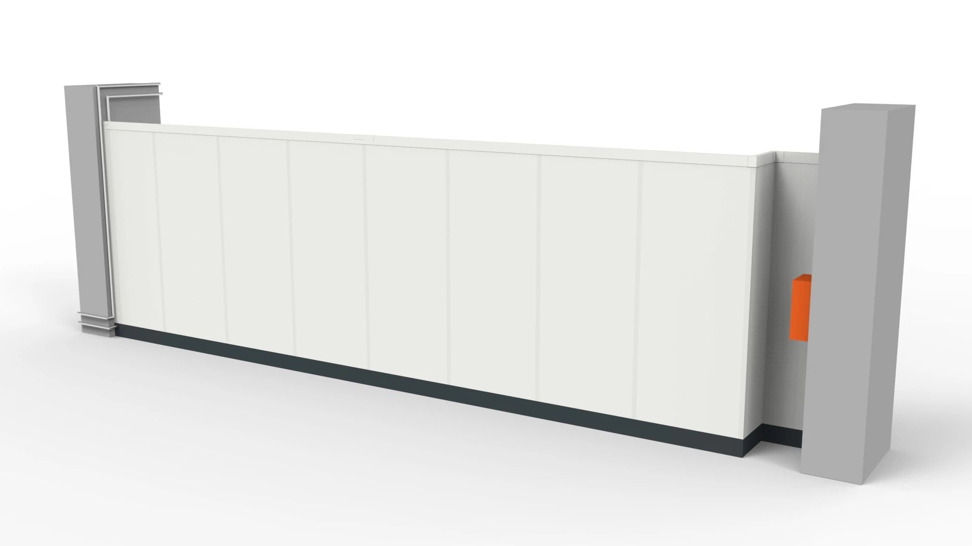 - Klassische Trennwand mit Deckenanschluss: Diese Variante ermöglicht eine vollständige Abtrennung von Bereichen, indem die Trennwand bis zur Hallendecke geführt wird. Mit dem modularen Baukastensystem RS 45 sind Wandhöhen von bis zu 5,50 m realisierbar.