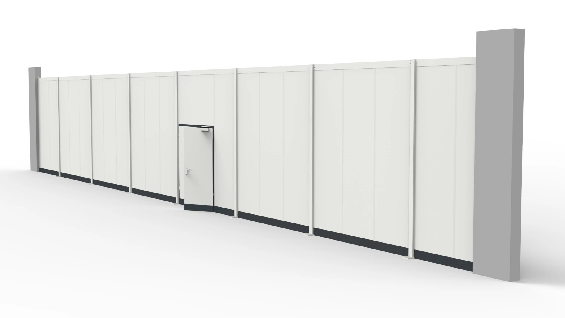 Die Industrietrennwände mit Anschluss und Verbindung zur Decke ermöglichen eine vollständige Abtrennung einzelner Arbeitsbereiche innerhalb von Industriehallen. Diese klassische Ausführung gewährleistet eine optimale Isolation von Produktionszonen, Lagerflächen oder sensiblen Bereichen und trägt entscheidend zur Einhaltung von Sicherheits- und Schutzanforderungen bei. Der Deckenanschluss sorgt für eine durchgängige Barriere, die nicht nur Lärm und Staub minimiert, sondern auch die klimatischen Bedingungen innerhalb des abgetrennten Raums kontrolliert. Besonders in Umgebungen mit hohen Anforderungen an Sauberkeit, Temperaturführung oder Schallschutz bieten diese Trennwandsysteme eine verlässliche Lösung, die sich exakt an die baulichen Gegebenheiten anpassen lässt. Die Integration von Türen, Fenstern und technischem Zubehör ermöglicht eine individuelle Ausführung und unterstützt die effiziente Nutzung des verfügbaren Raums.